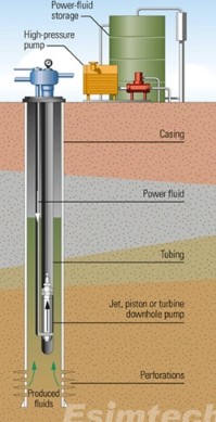 | Jet Pump | High-pressure fluid through a nozzle lifts well fluids. | Wells with sand/solids, high-viscosity fluids | No moving parts downhole, handles abrasive/corrosive fluids | Requires high-pressure power fluid, higher operational costs |